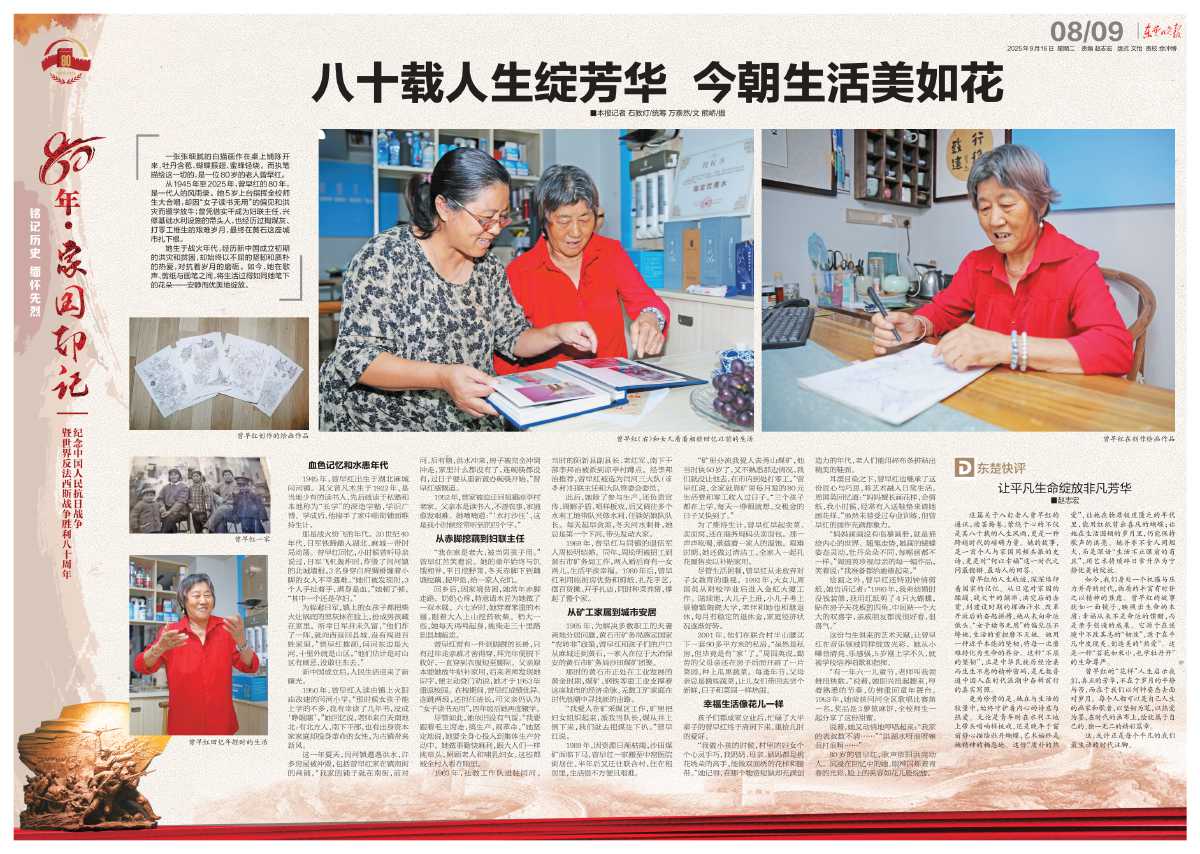 详情点击>> 昂扬奋进:开创光明前景 朱桂枝院落打扫得一尘不染,几株老槐树投下斑驳的树荫,墙角处的野花开得绚烂。朱桂枝的寿宴上,儿孙们沿着S201省道从四面八方赶回。看着儿孙绕膝,朱桂枝脸...