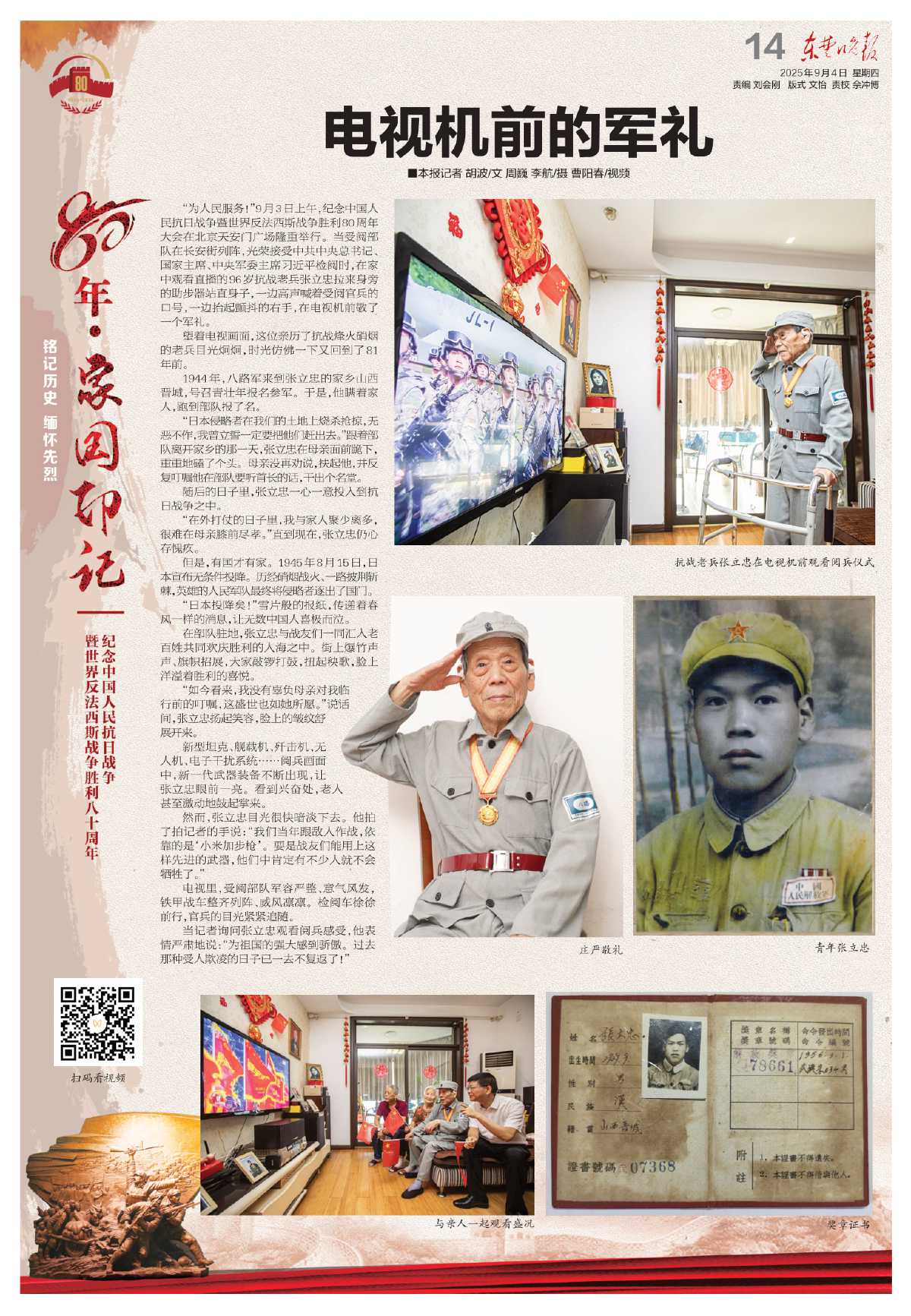 望着电视画面,这位亲历了抗战烽火硝烟的老兵目光炯炯,时光仿佛一下又回到了81年前。
