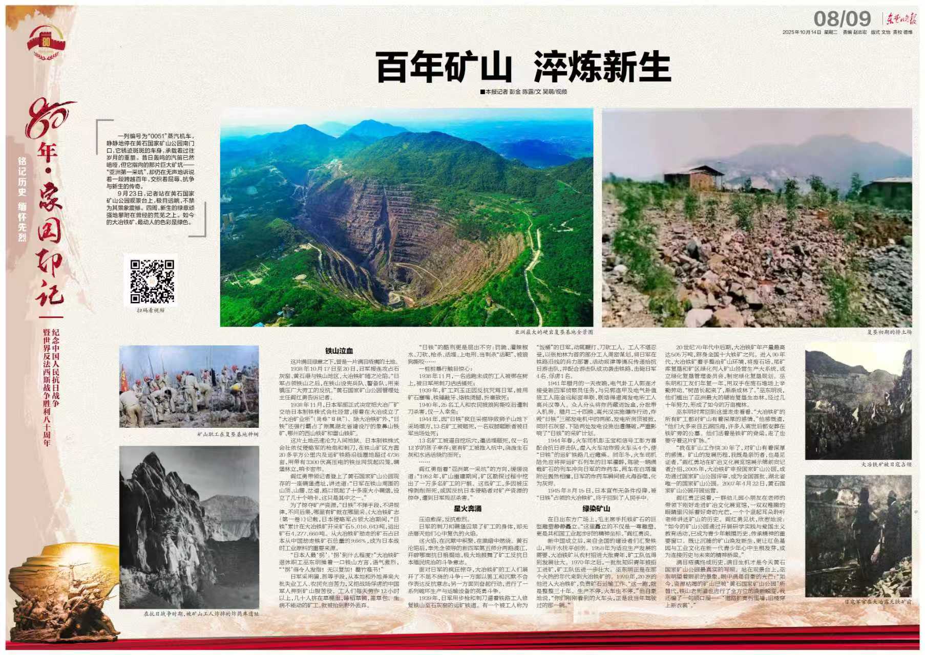 阎红勇正说着,一群幼儿园小朋友在老师的带领下刚好走进矿冶文化展览馆,一双双稚嫩的眼睛里闪烁着好奇的光芒,一个个竖起耳朵聆听老师讲述矿山的历史。阎红勇见状,欣慰地说:“如今的矿山公园通过开展研学实践与爱国主义教育活动,已成为青少年触摸历史、传承精神的重要窗口。既让沉睡的矿山焕发新生,更让红色基因与工业文化在新一代青少年心中生根发芽,成为连接历史与未来的精神桥梁。”