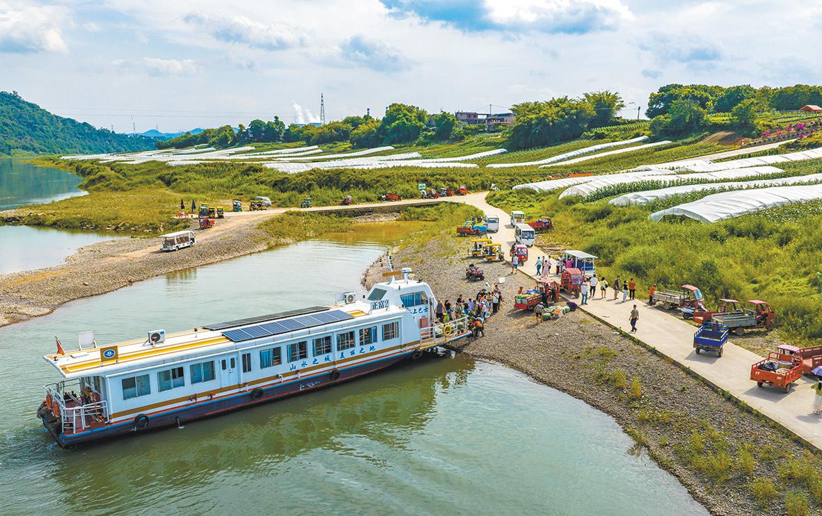 越来越多的村民像罗健一样,吃上了“生态旅游饭”。近年来,大中村所在的莲花街道大力助推农文旅融合发展:改造农房小院51户,提升农家乐服务品质;打造“网红芦苇”打卡点,串联江滩、菜园等景观;推出蔬菜采摘、土地认养、江岛观光等一系列文旅体验项目,为这座江心岛注入新活力。目前,中坝岛年游客量已突破16万人次。