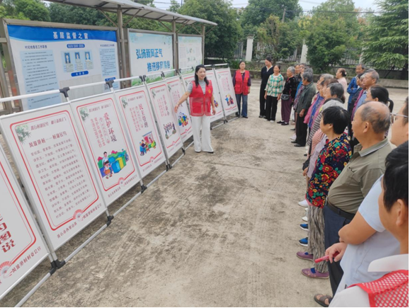 活动当天,在风波港村新时代文化广场上的展板前围满村民。志愿者们结合展板内容 ,把抽象条款转化为“身边事”和鲜活的案例。