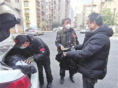 21日上午,冬日暖阳下,中国好人、下陆区文明宣导队队长吕东和两名队员一起,将一批爱心物资分发给下陆各社区的文明宣导队。