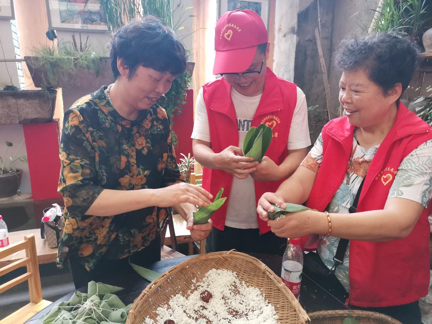 活动中,下沉党员干部和志愿者一起包粽子,为独居老人、残疾人和少数民族等特殊群体送去温暖。