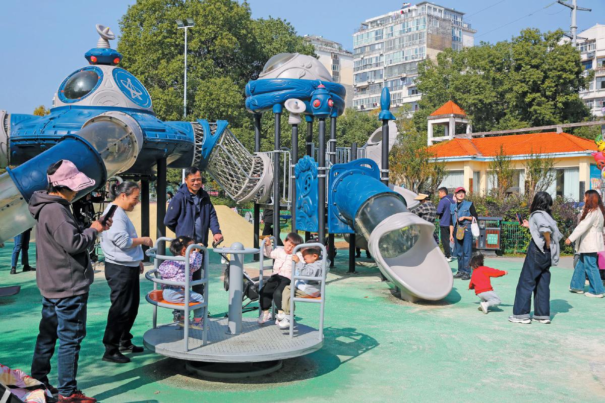 ・许多市民趁着天气晴好,在青山湖智慧体育公园休闲娱乐