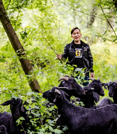 牧羊人叫柯于敏,1981年生,有着十几年的牧羊经验。他说,自己养的是四川黑山羊,从小吃山上的绿草长大,从来没有吃过饲料。因采用生态养殖方法,柯于敏的羊在附近一带小有名气,不光在太子镇销售,还卖到黄石城区、大冶等地。他乐呵呵地说:“过年卖到80元一斤,去年卖了十几万。目前有100多只羊,黑山羊长得快,到了过年能长到两百斤。”