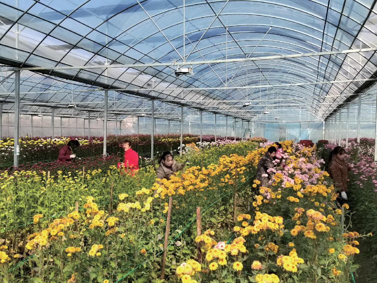 花农在大棚中忙碌