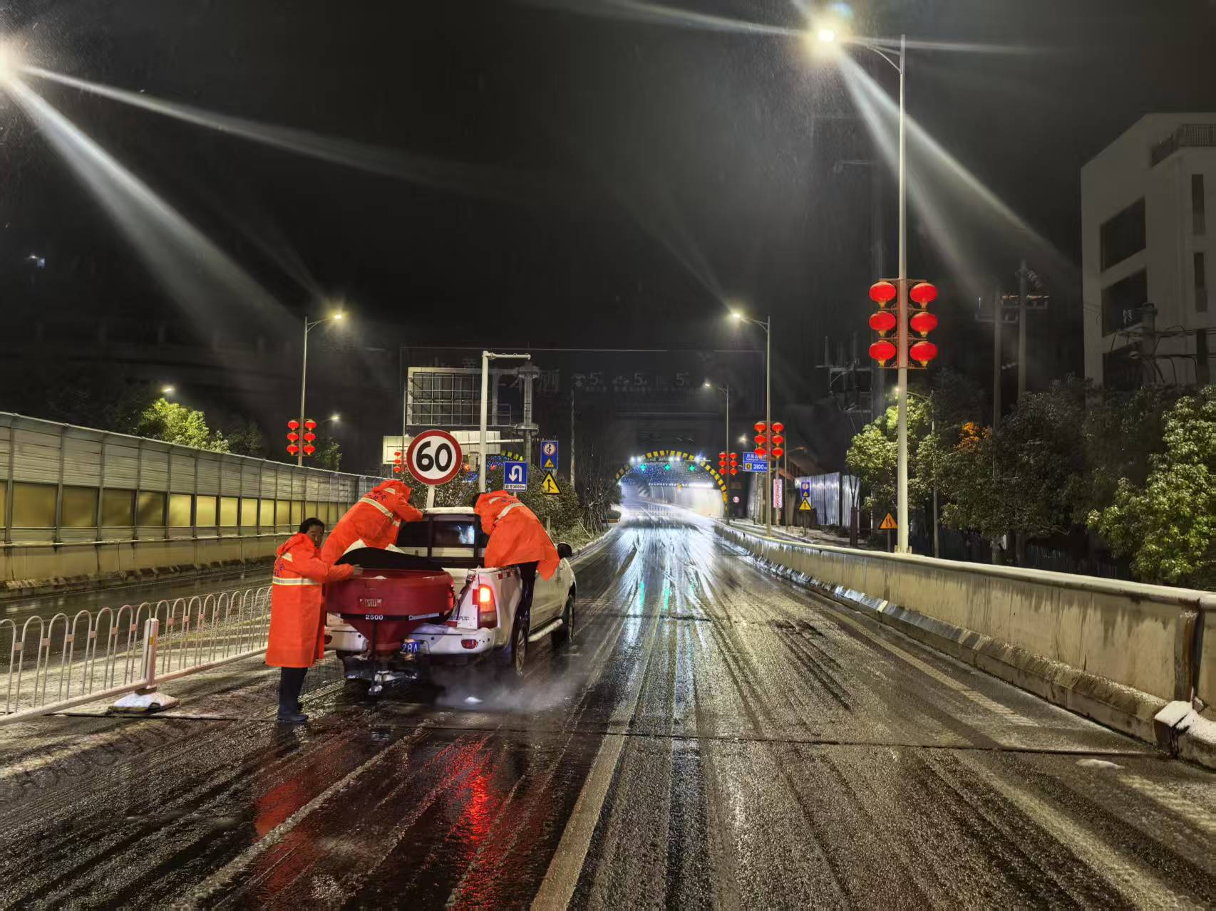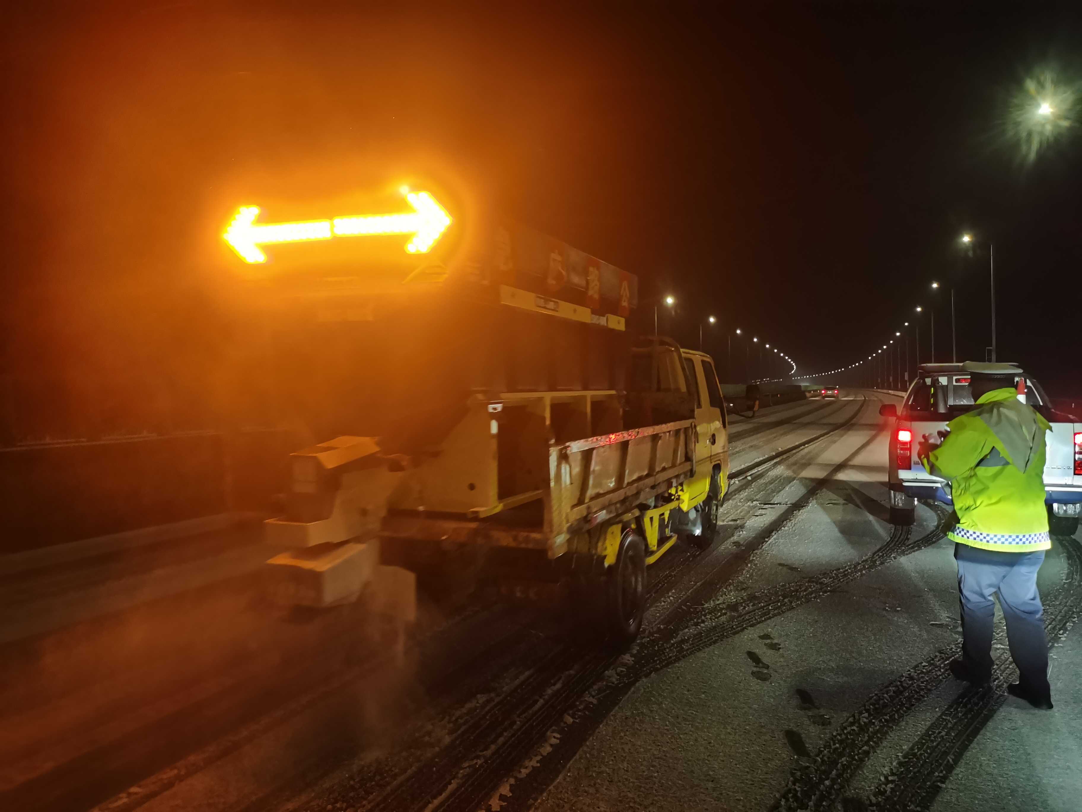 在高速公路方面,黄石市公安局交通管理支队高速警察大队持续在道路上开展巡逻防控工作,截至上午7时,黄石辖区武阳高速、蕲嘉高速和鄂咸高速大冶段全线出现小雪和雪籽,辖区全线循环开展融雪剂撒布作业。同时,高警部门已对辖区三条高速采取管制措施,对三型以下货车和客车、两客一危限制通行,仅三型以上货车(含)及作业车辆允许通行。