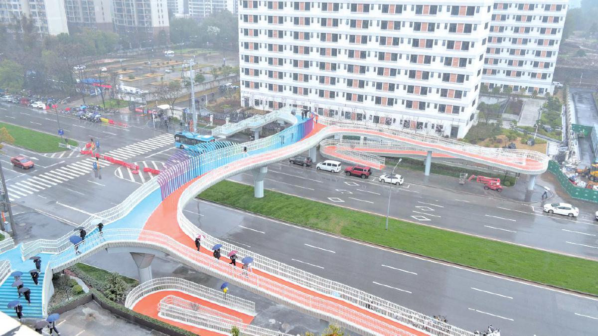 该人行天桥的建成投用为湖北理工学院学生带来了便利。该校学生夏思远说,以前从宿舍到校内上课要穿越磁湖路,红绿灯时间较长且需在车流间隙中快步通过,如今过桥通行既安全又快捷。