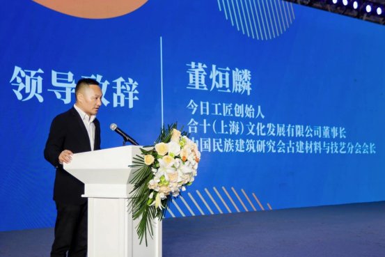 今日工匠创始人、合十(上海)文化发展有限公司董事长、中国民族建筑研究会古建材料与技艺分会会长董烜麟代表组织方作答谢辞。他表示,本次大会不仅是行业交流的盛会,更是凝聚共识、播种未来的文化之约,希望以古建为纽带,推动产学研用深度融合。