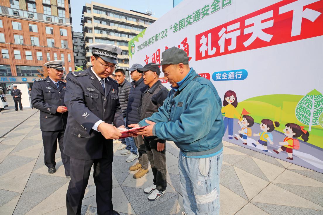 “文明交通 礼行天下”,12月2日上午,在第14个“全国交通安全日”到来之时,黄石市公安局交通管理支队在黄石钟楼步行街广场上,举行了2025年黄石市122“全国交通安全日”主题宣传活动启动仪式,并向2025年度10名黄石“文明好司机”颁发证书。