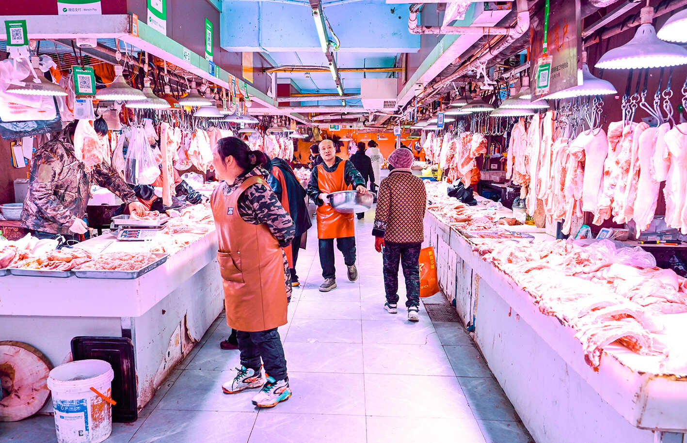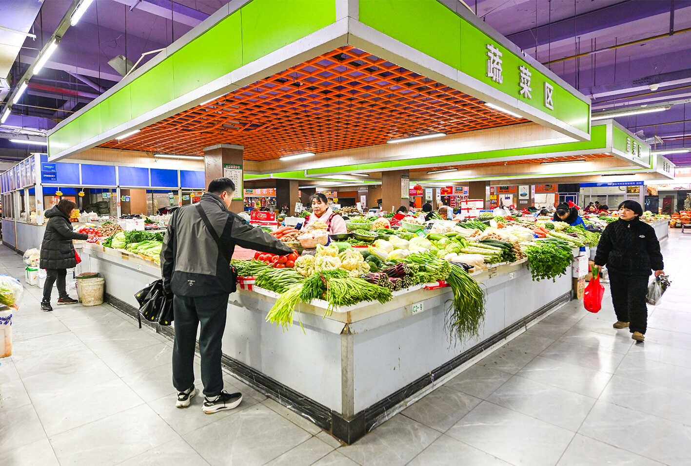 19日,在黄石市采阳园(永安)生活广场,各类生活物资储备充足,蔬菜、粮油、肉禽等主要商品价格总体平稳,“菜篮子”保供稳价有序有力。(黄石融媒记者 鄢巍 摄)