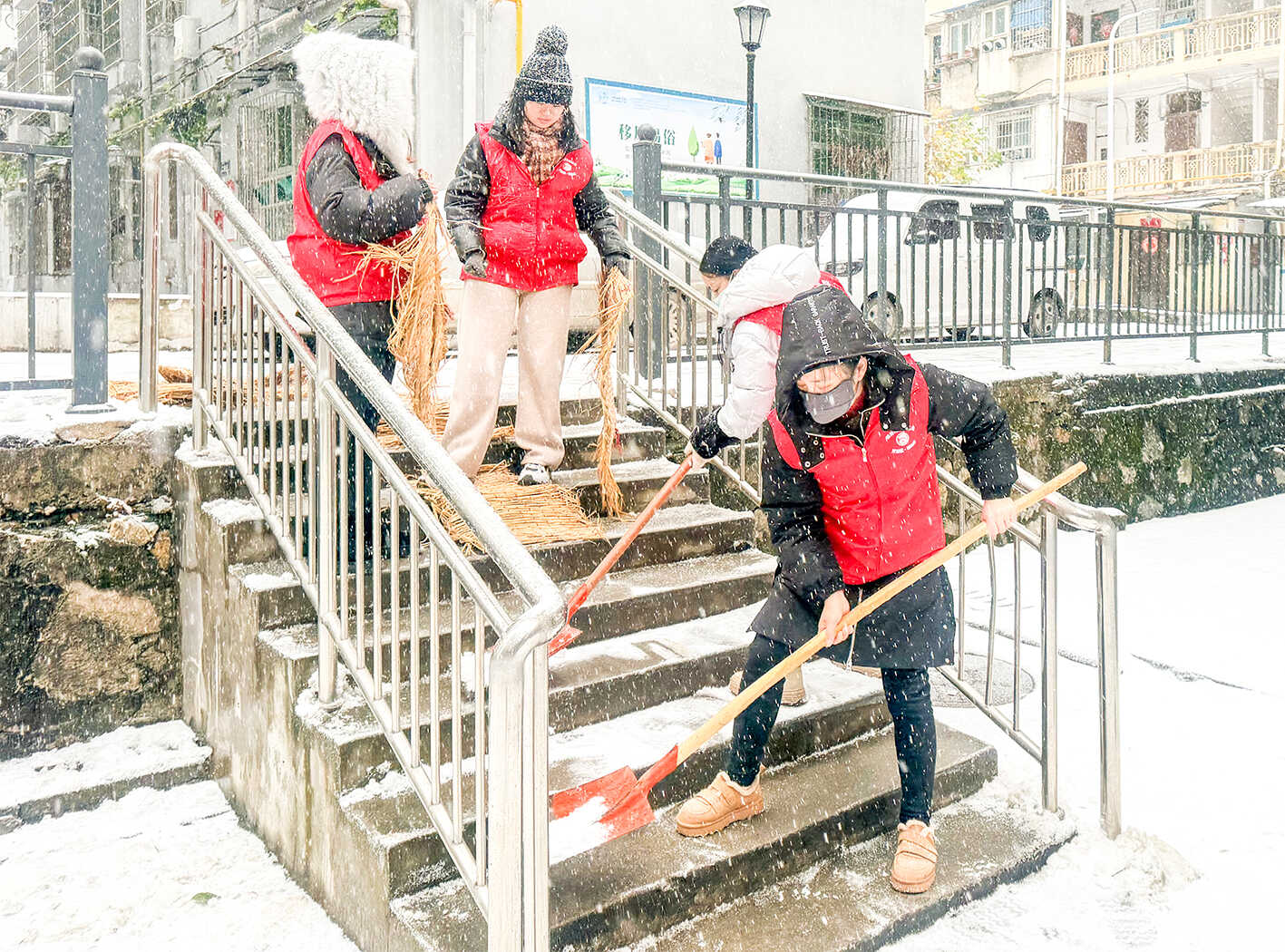 20日,开发区·铁山区九龙洞社区组织志愿者开展除雪志愿服务,确保居民正常生活不受影响。(黄石融媒记者 鄢巍 通讯 杜晶晶 摄)