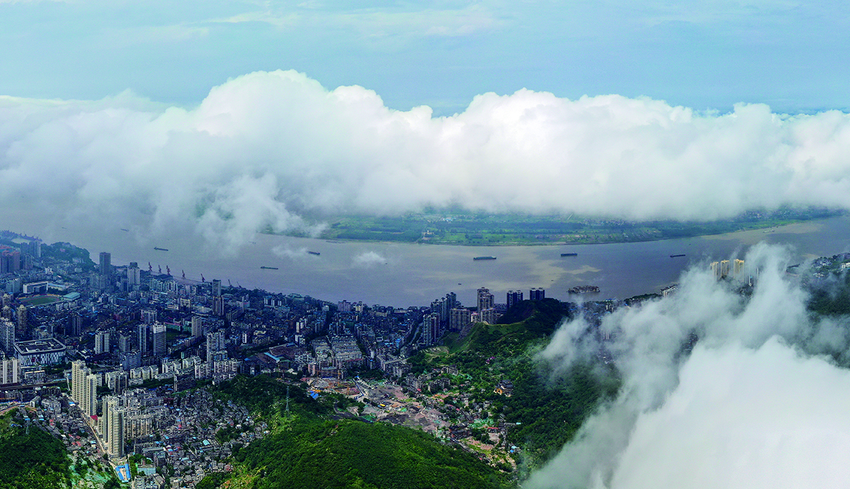 12日,我市上空云雾弥漫,长江在云雾中若隐若现美不胜收。连日来我市以阴雨天气为主,最低气温下降到24℃左右,气候宜人。