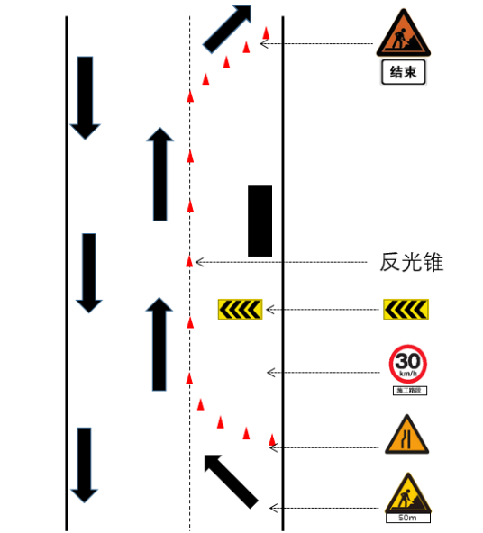 1.施工期间,使用锥筒分段(每段20米)封闭最外侧机动车道,临时占用最外侧一条机动车道,同向保留一至两条机动车道正常通行。