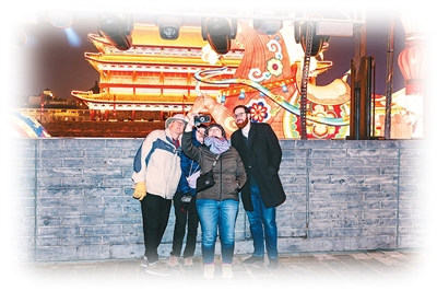 1月1日,陕西省西安市举办2026“长安灯会·西安城墙”新春系列文化活动,外国游客登城墙、赏花灯。 |