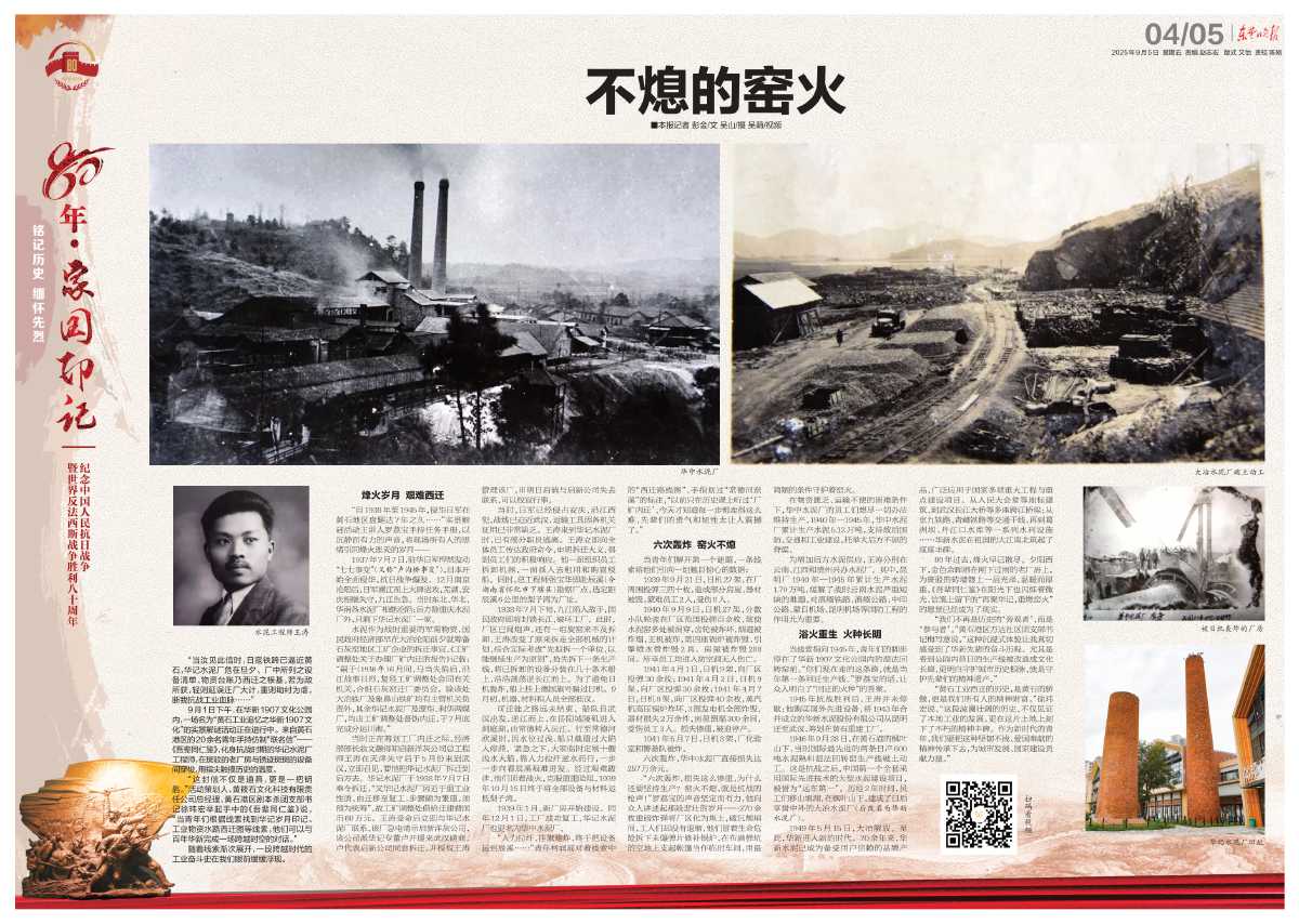 “六次轰炸,损失这么惨重,为什么还要坚持生产?窑火不熄,就是抗战的枪声!”罗荔宝的声音坚定而有力,他向众人讲述起那段悲壮的岁月——270余枚重磅炸弹将厂区化为焦土,破瓦颓垣间,工人们却没有退缩,他们冒着生命危险拆下未爆弹片修补锅炉,在布满弹坑的空地上支起帐篷当作临时车间,用最简陋的条件守护着窑火。