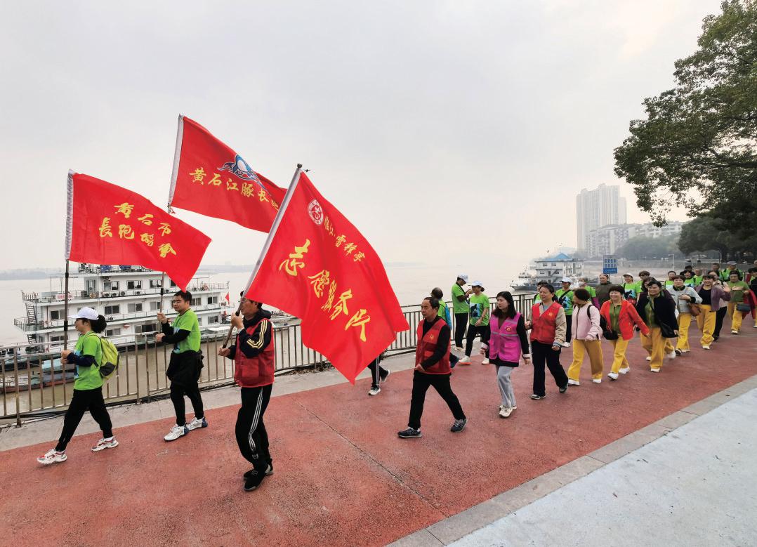 “保护长江、保护江豚,让我们共同行动起来。”10月27日上午,在黄石市中窑江滩公园,来自黄石市江豚长跑队、西塞山区临江社区长江大保护志愿服务队、江英舞蹈队、中窑江滩太极队等40余名志愿者从江滩公园出发,启程开展“湖南洞庭湖——江西鄱阳湖千里巡江”活动。