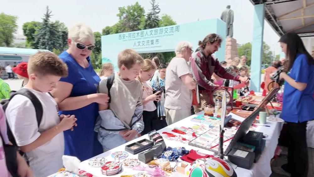 5月31日,车身绘有大雁塔、古城墙等西安地标建筑的首趟中国-中亚国际人文旅游专列(西安-阿拉木图段)缓缓驶入哈萨克斯坦阿拉木图火车站。中哈系列文化交流活动由此拉开序幕。