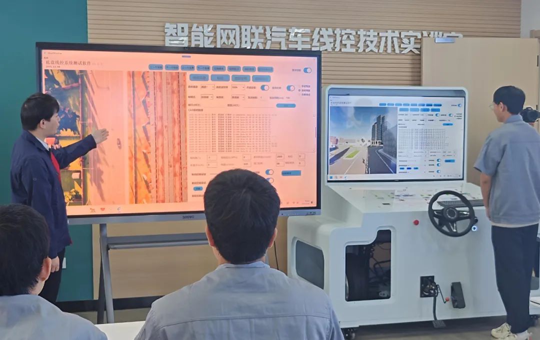 武汉软件工程职业学院智联网汽车产业学院演示虚拟仿真数字技术助力智能网联汽车教学。(湖北日报全媒记者 李玉麟 摄)