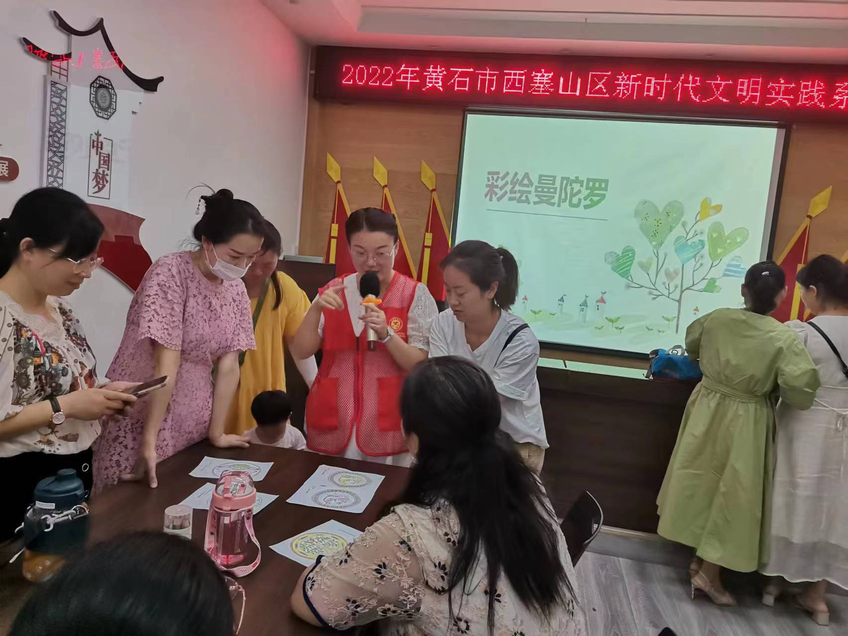 为丰富居民文化生活,提高居民文化素养,在辖区内构建和谐有爱的亲子关系,9月11日下午,西塞山区大智路社区在社区文明实践站,开展以“彩绘曼陀罗绘出好心情”为主题的彩绘亲子活动。