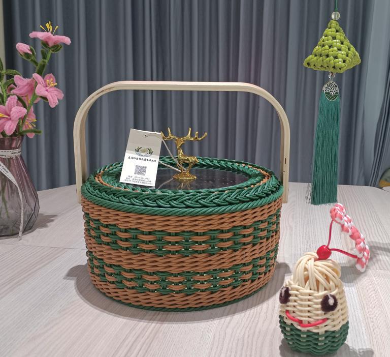 在手工坊陈列区域,有手提包、单肩包、双耳托篮、果盘、端午礼盒等编织产品,在展现时尚品位的同时,又能满足实用需求。“目前,残疾人编织的用品有600多件,手提包、果盘等销售较多,价格从30元到200元不等。”说起藤编用品,徐婷婷如数家珍。